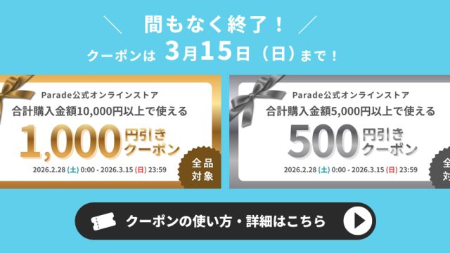 イベント 【明日終了!】お買い忘れはないですか?全品クーポン対象で買い物納め✨ 2025年12月30日 parade https://parade-shoes.jp/blog/wp-content/uploads/2024/09/re22_logo2.png 靴屋Parede-パレード-のスタッフのまるまるな話