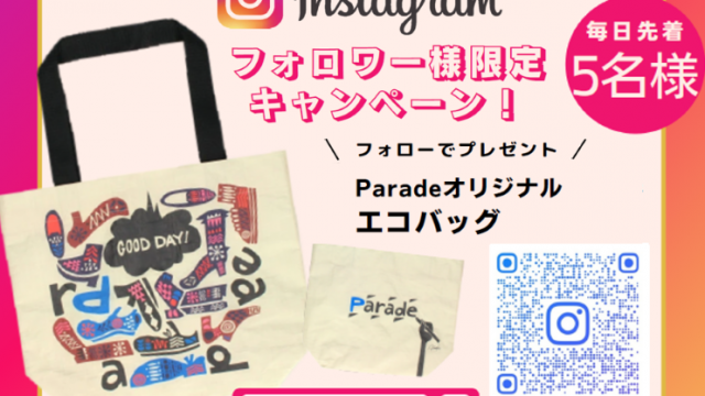 ショップ情報 【Parade錦糸町店】インスタグラムフォロワー様限定キャンペーン 2025年11月5日 parade https://parade-shoes.jp/blog/wp-content/uploads/2024/09/re22_logo2.png 靴屋Parede-パレード-のスタッフのまるまるな話