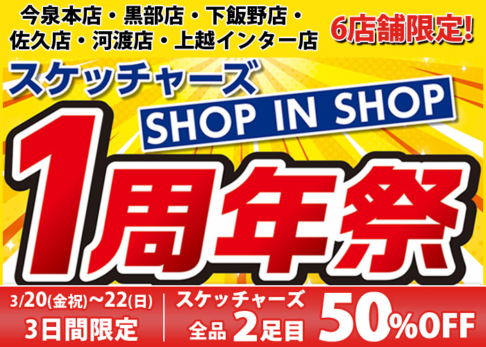 日頃の感謝をこめて、店舗限定でスケッチャーズ2足目半額セールを開催!