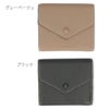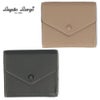 コロンとしたくるみボタンがポイントのメール型小物のシリーズ。肌触りの良いシボ合皮は傷が目立ちにくく、日常使いにぴったりなアイテム。お札の収納部分がガバッと開くのが特徴の2つ折り財布。