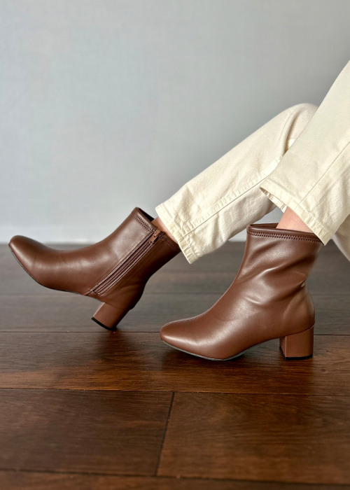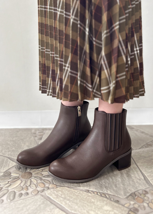 ストレスフリーな履き心地を叶える、伸縮性の高いサイドゴアと内側のファスナーで、忙しい毎日も脱ぎ履きがとにかくスムーズ! 約5cmのチャンキーヒールは、安定感がありながらもスタイルアップを叶え、疲れにくいのが嬉しいポイント。 サイドゴア部分がリブ風の立体的なデザインになっているのが、さりげなくトレンド感をアピールできる秘訣!